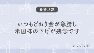【投資状況】いつもどおり金が急騰し米国株の下げが残念です【26/02/09】