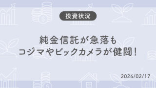 【投資状況】純金信託が急落もコジマやビックカメラが健闘! 【26/02/17】