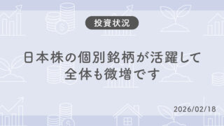 【投資状況】日本株の個別銘柄が活躍して全体も微増です【26/02/18】