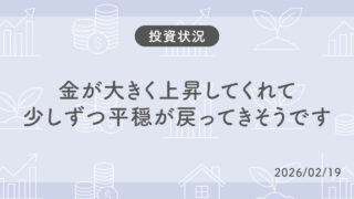 【投資状況】金が大きく上昇してくれて少しずつ平穏が戻ってきそうです 【26/02/19】