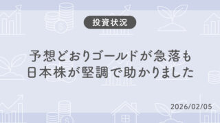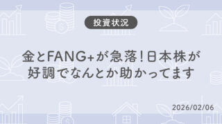 おかねのこと 【投資状況】金とFANG+が急落!日本株が好調でなんとか助かってます 【26/02/06】