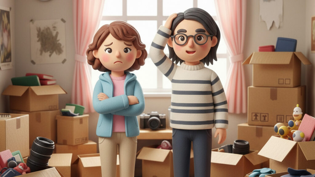 - 物置状態の部屋:夫の部屋は物が溢れかえっており、ゴミとして捨てるのもこれを綺麗にして内見客を迎えるのもほぼ不可能でした。