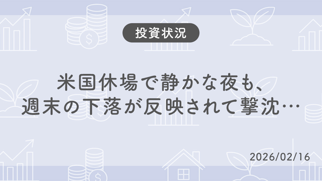 【投資状況】米国休場で静かな夜も、週末の下落が反映されて撃沈… 【26/02/16】